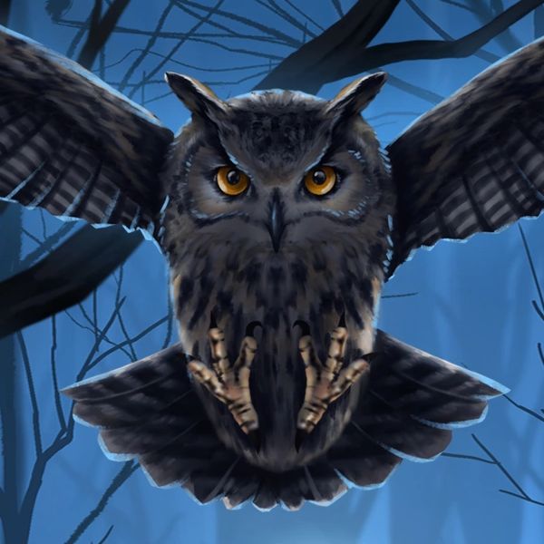 Not too far from the village in the swamp, lies a strange and twisted forest. Its’ trees touch the edge of the sky, standing like mighty battlements. At the edges of the waking and twilight hours it is said that a haunting call rings out from that shrouded forest. A deadly hunter resides deep within those woods, a living shadow that soars through the night. Those who have made it back, claim to have returned with more than one shadow on their side…